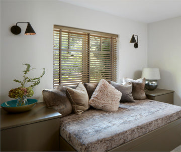 Additionally, our Somfy Sonesse 40 tubular motor can be integrated into our 57 x 51mm classic headrail, enabling smooth operations to raise, lower, tilt, and turn the slats on our Elements Wood Venetian blinds.